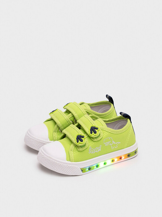 Текстильные детские кеды на подошве с огоньками для мальчика. Сбоку на модели есть светоотражающий принт с динозавром. Для удобства обувания предусмотрена две застежки липучки. В обуви стоит текстильная хлопковая подкладка c высоким содержанием хлопка 100%, которая обладает высокой гигроскопичностью. Профилированная стелька выполнена из свиной натуральной кожи на основе из амортизирующего материала. Стелька съемная. Имеются светоотражающие элементы. Подошва из ПВХ легкая и гибкая, устойчива к истиранию. Подошва с мигающим элементом flashlight.