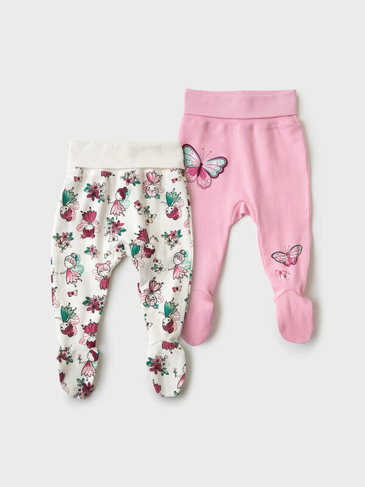 Комплект из двух мягких ползунков для новорожденной девочки. Обе модели с закрытыми ножками и удобным широким поясом на резинке. Розовый дизайн с принтом бабочек и кукол. На поясе спереди есть декоративная нашивка с логотипом. Материал — приятный к телу, 100 % хлопковой трикотаж интерлок.