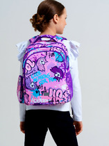 Школьный рюкзак для девочки подростка. Прямые широкие регулируемые лямки с мягкими вкладками и сетчатым покрытием для улучшения вентиляции, 3 основных отделения на молнии, 2 боковых  кармана: сетчатый и на молнии. Внутри: 1 отсек: карман на молнии, открытые карманы для канцелярии. 2 отсек: без карманов, 3 отсек: карман для папок, карман на молнии, 2 кармана без замка, карабин для крепления пропуска/пенала/ключей, усиленная спинка, дно и верхняя ручка, спинка и обратная часть плечевых ремней - сетчатые, для улучшенной вентиляции, светоотражающие элементы на переднем кармане и плечевых ремнях