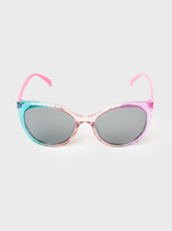 Солнцезащитные очки для девочки. Градиентная прозрачная оправа по верхнему краю декорирована стразами. Солнцезащитные очки с фильтром Cat3 и поляризацией. Тёмные линзы имеют защиту UV400, которая отражает 100% ультрафиолетовых лучей с длиной волны менее 400 нанометров, эффективно блокируя все ультрафиолетовые лучи при солнечном свете. Ширина оправы - 126 мм, длина дужек - 125 мм. Обхват головы 48-50 см. Небьющиеся линзы из триацетата целлюлозы устойчивы к царапинам. Поляризационные фильтры на очках поглощают блики, отражаемые от горизонтальных поверхностей, что помогает повысить четкость зрения и избежать напряжения глаз ребенка. Только при просмотре в линзах с поляризацией видны воздушные шарики в виде сердечек на тест-картинке, вложенной в чехол. Небьющиеся линзы из триацетата целлюлозы устойчивы к царапинам. Такие очки эффективны для защиты глаз в тропиках, у моря и в горах. В комплекте: текстильный чехол, тест-картинка со слониками. Текстильный чехол выполнен из микрофибры и им можно легко ухаживать за изделием. . Очки транспортируются в картонной коробке.