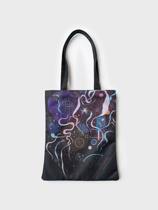 Легкая, вместительная и удобная сумка-шопер для девочки-подростка из коллаборации с Третьяковской галереей. Принт  - фрагмент картины Василия Кандинского, Движение, 1935. Она не занимает много места, если ее сложить и носить с собой и использовать при необходимости. Параметры сумки: высота - 39 см (без ручек), ширина -33см, глубина - 1 см