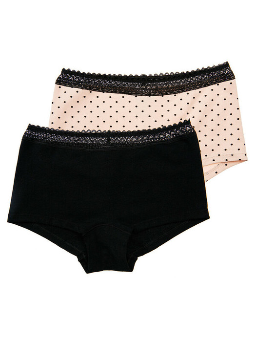 Трусы-шорты, 2 шт. в комплекте. Мягкое трикотажное полотно с высоким содержанием хлопка и добавлением эластана. Кружевная резинка.