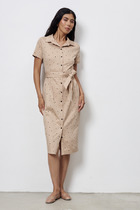 Жакет в стиле сафари выполнен из плательной ткани. Свободный силуэт с притачной планкой и застёжкой на пуговицы. На задней части изделия выполнена кокетка с небольшой складкой. Вырез горловины оформлен отложным воротником на стойке. Рукав цельнокроеный с патой на пуговице. Изделие украшено оригинальными накладными карманами с клапанами. В комплекте пояс из основной ткани.