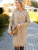 Vilatte Платье двуслойной жаккардовой вязки с кашемиром D32.056 карамельный-беже