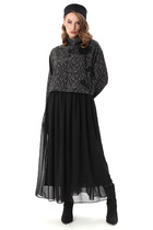 Платье полуприлегающего силуэта из плательной ткани. Круглый вырез горловины. Спинка со средним швом, снизу разрез. Рукав втачной в спущенную пройму. В таблице размеров представлены параметры человека, а не изделия.