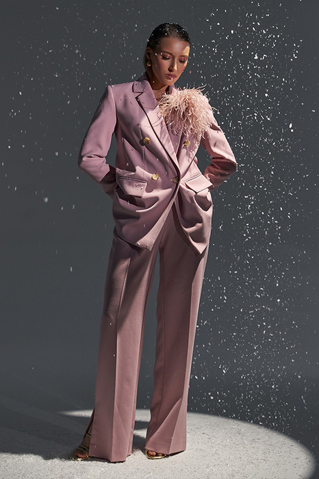 Брюки прямого силуэта с разрезами в боковых швах из костюмной ткани. Притачной пояс со шлёвками. Застёжка на молнию-гульфик и пуговицу. Секрет такой модели кроется в безупречно точной посадке по талии и бедрам – ничего лишнего, только конструктивные детали, которые придают четкость линиям силуэта.