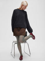 Джемпер свободного силуэта со спущенной линией плеча и рукавом до локтя выполнен из эластичного полотна. Вырез горловины оформлен бейкой из основной ткани. В таблице размеров представлены параметры человека, а не изделия.