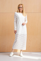 Джемпер свободного силуэта со спущенной линией плеча и рукавом до локтя выполнен из эластичного полотна. Вырез горловины оформлен подвязом. В таблице размеров представлены параметры человека, а не изделия.