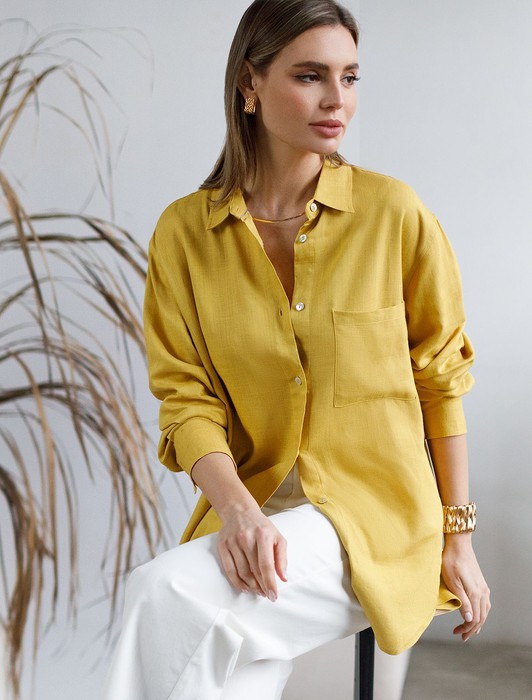 Состав: 70%Вис 30%Лен Параметры модели на первом фото: Рост 170, бюст 89, талия 63, бедра 92Блузка выполнена изо льна с вискозой. Модель с застежкой на пуговицы из натурального перламутра дополнена сольным карманом. Сочетается в костюме с брюками D24.222 и шортами D28.052. Ткань изящно струится, почти не мнется и сохраняет форму в течении долгого времени, обладает высокой воздухопроницаемостью, обеспечивая комфорт даже в самое жаркое время года.