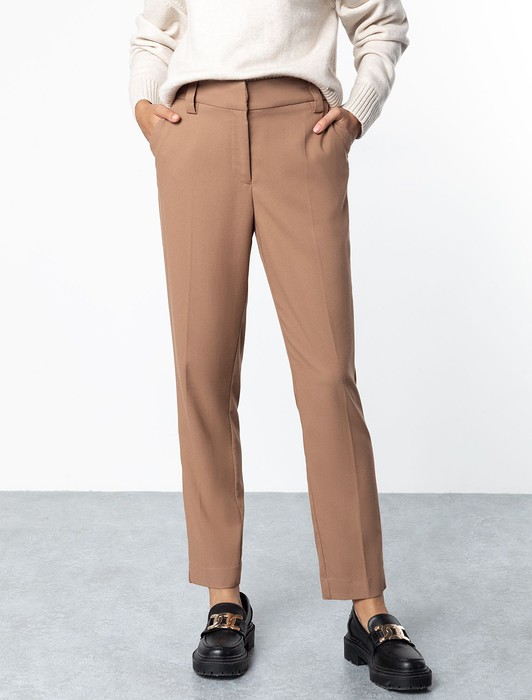 Состав: 50%Вис 48%ПЭ 2%ПУ; ПОДКЛАДКА- 100%ПЭКлассические брюки дудочки из мягкой эластичной поливискозы с фактурой. Классическая форма - база на все времена. По бокам два кармана, с задней части изделия один карман в листочку с фирменным логотипом бренда. Совет стилиста: носите в костюме с жакетом D21.069 как хорошую альтернативу вместо привычного офисного дресс-кода. С футболкой, курткой из денима и кедами на прогулку.