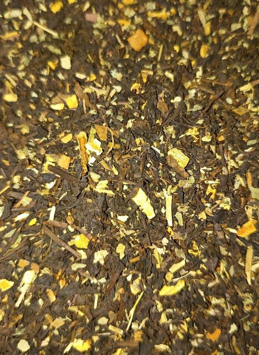 Чёрный классичесуи индийский чай, апельсиновая цедра, вишня, цукаты, аромамасла.