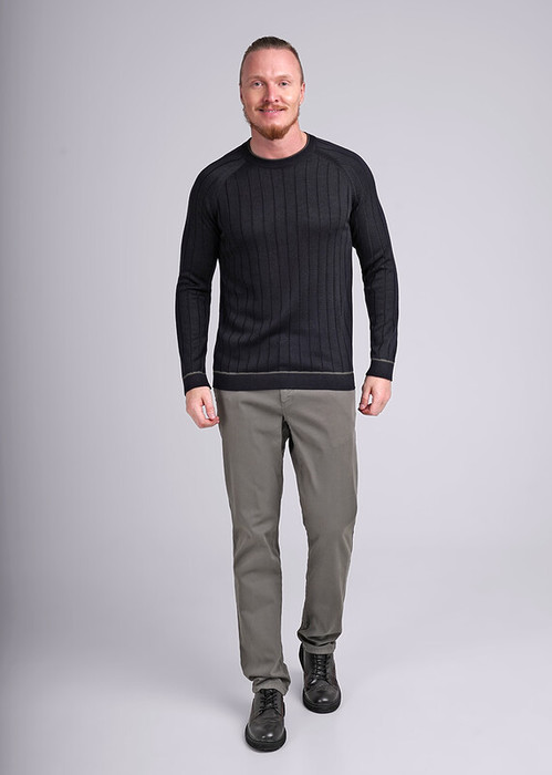 Мужской вязаный джемпер с круглым вырезом горловины и длинным рукавом реглан. Изделие выполнено из смесовой пряжи с добавление вискозы. Модель не сковывает движений и обеспечивает удобную посадку, подойдет к любому образу.