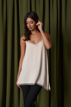 Майка классической длины на широких бретелях, декорирована кружевом по переду.