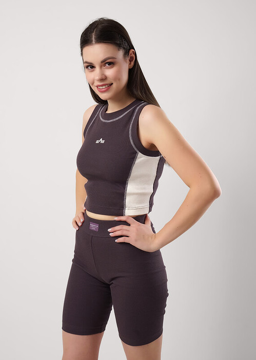 Майка для дома и отдыха из трикотажного полотна кашкорсе, с широким плечом. Обтачки по горловине и пройме. По переду контрастные резы. По горловине, пройме и резам контрастный застил. Спереди принт.