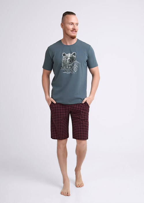 Акция Clever Пижама мужская CLE MHP441223/1 т.зелёный/бордовый