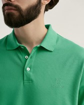 Футболка-поло с коротким рукавом. Изделие выполнено из жаккардового трикотажного полотна с контрастными вязаными отделками. Модель дополнена имиджевой фурнитурой. Такая футболка-поло отлично сочетается с брюками или джинсами.