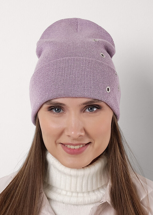 Шапка женская двойная из хлопковой пряжи, с отворотом, без утеплителя, декорирована люверсами. Идеально подойдёт для весенне - осеннего периода.