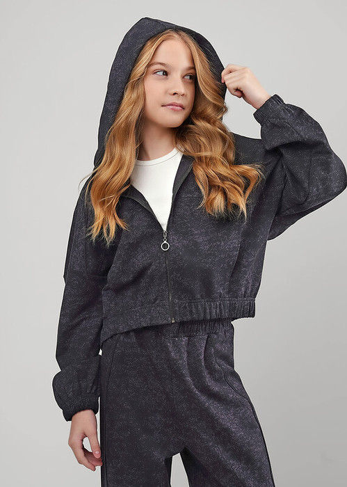 Стильная укороченная толстовка в трендовую набивку на молнии станет отличным дополнением к твоему гардеробу! Модель дополненная фигурными резами, капюшоном, и функциональными карманами. Создавай стильные образы на каждый день и будь в тренде !