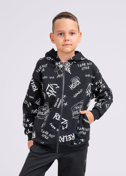 Совместные покупки Каменск-Уральский Детская одежда Кофты, кардиганы — Акция Clever Толстовка детская для мальчика CLE 746805/88фн чёрный/молочный