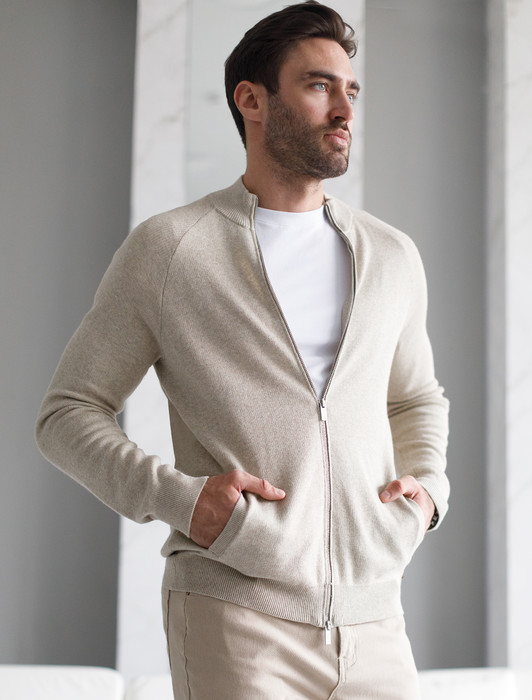 Состав: 55%Хлопок 45%ПАН (акрил) Параметры модели на первом фото: Рост 190, бюст 108, талия 87, бедра 104Светло-бежевый джемпер с длинными рукавами поддержит образы любой палитры и сложности. За многофункциональность отвечают лаконичный крой и застежка на молнию. Изделие связано из премиального хлопка с добавлением акрила, которые не дадут замерзнуть в прохладный день на улице, но при этом не перегревает в помещении.