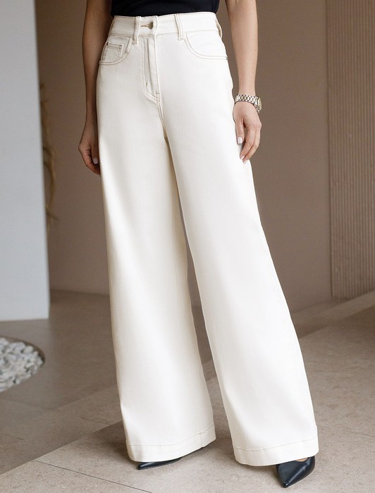 Состав: 98%Хлопок 2%ПУ Плотность: 12.5 OZ Параметры модели на первом фото: Рост 172, бюст 88, талия 64, бедра 88Джинсы-трубы в теплом белом оттенке выполнены из эластичного денима. Модель в теплом белом оттенке дополнена контрастными бежевыми строчками. Посадка на талии и свободный крой подчеркивают фигуру и вытягивают силуэт. Изделие дополнено фирменным патчем.