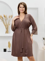 Сорочка женская из трикотажного полотна «кашкорсе» с набивным рисунком, полуприталенного силуэта, с короткими втачными рукавами, углубленной формой горловины, по центру которой выполнена небольшая сборка. Низ изделия и нижние срезы рукавов обработаны подгибкой, срез горловины - эластичной тесьмой с фасонным краем, в центре настрочен узкий декоративный бантик.
