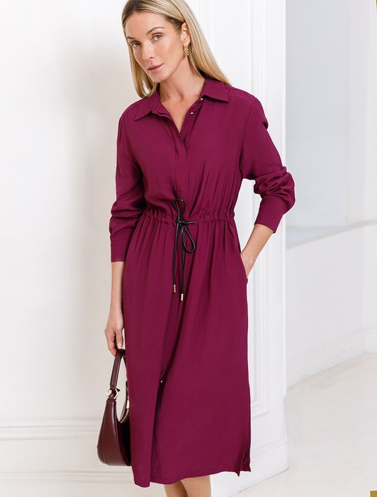 Состав: 55%Вис 45%Лиоцелл (Вис) Параметры модели на первом фото: Рост 172, бюст 88, талия 64, бедра 88Платье А-силуэта с отложным воротником как у рубашки выполнено из лиоцелла с вискозой. Лаконичная модель с потайной застежкой на пуговицы дополнена боковыми карманами и поясом-шнуром из эко-кожи.Ткань поддерживает оптимальный микроклимат, поэтому изделие подходит для любого сезона.