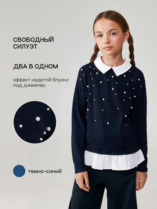 Совместные покупки Каменск-Уральский Детская одежда Джемперы, свитеры — Acoola Джемпер детский для девочек Nicolet 20240310041 темно-синий