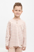 Вязаный джемпер для мальчика из мягкой полушерстяной пряжи. Длинные рукава с манжетами. Внизу эластичный пояс. Спереди нашивка. Изделие сохраняет форму и стойкий цвет после многочисленных стирок.