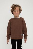 Вязаный джемпер для мальчика из мягкой полушерстяной пряжи. Длинные рукава с манжетами. Внизу эластичный пояс. Спереди нашивка. Изделие сохраняет форму и стойкий цвет после многочисленных стирок.