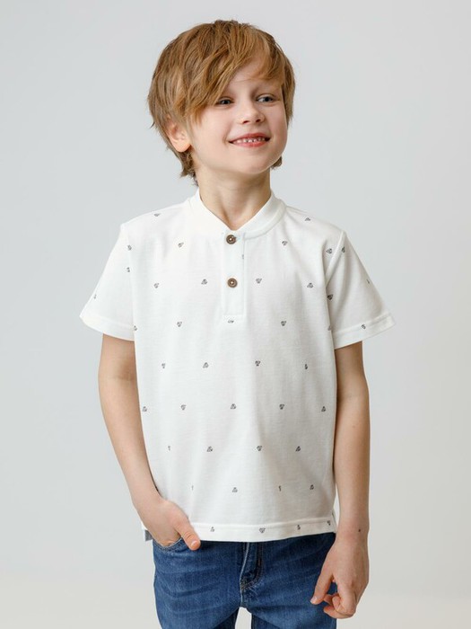 Поло для мальчика. Изготовлено из высококачественного трикотажного полотна пике. У изделия эластичный воротник и застёжка спереди на две пуговицы. Все трикотажные полотна производятся в соответствии с нормами швейцарского сертификата ЭкоТекс.