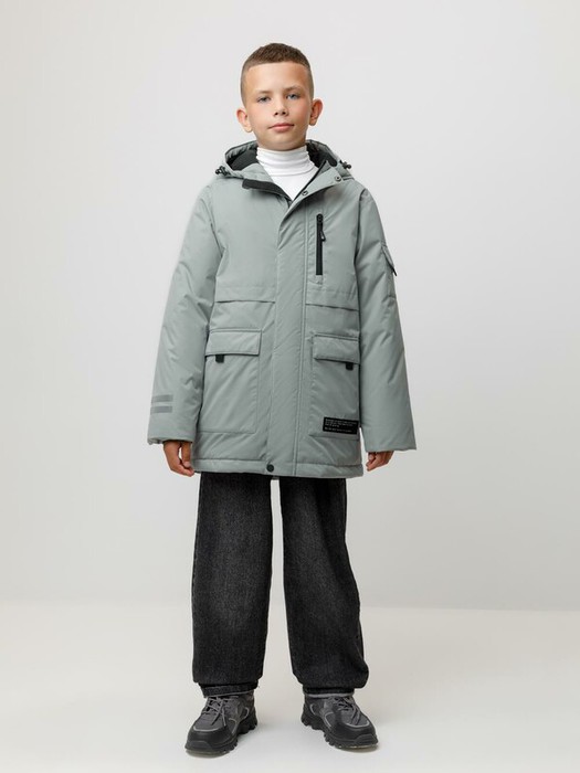 Зимняя куртка для мальчика с утеплителем SEE®: 250 г/м2. Выполнена из мембранной ткани с дополнительной тефлоновой обработкой, которая предохраняет изделие от загрязнений и отталкивает влагу. Подклад выполнен из 100% полиэстера Tricot. Куртка застёгивается на молнию и на дополнительную планку с кнопками. У изделия предусмотрена защита подбородка. Несъёмный капюшон имеет эластичную утяжку со стопперами, глубина капюшона регулируется при помощи липучки. На рукавах внутренние эластичные манжеты. Два накладных кармана с клапанами по бокам и один карман на груди. Во всех изделиях верхнего ассортимента для безопасности ребёнка предусмотрены светоотражающие элементы.