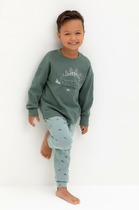 Трикотажная пижама из натурального хлопка. Джемпер с длинными втачными рукавами и брюки с эластичной резинкой в поясе. Мягкие манжеты на рукавах и по низу брюк. Оригинальная набивка и принт выполнены из стойких текстильных гипоаллергенных красителей. Изделие сохраняет цвет и форму после многократных стирок. Все трикотажные полотна производятся в соответсвии с нормами швейцарского сертификата ЭкоТекс.