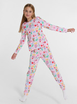 Трикотажный пижамный комплект из натурального хлопка. У джемпера длинные втачные рукава с мягкими манжетами. Брюки с удобным поясом на резинке и эластичными манжетами. Оригинальная набивка и принт выполнены из стойких, гипоаллергенных текстильных красителей. Все трикотажные полотна производятся в соответствии с нормами Швейцарского сертификата ЭкоТекс.