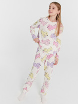 Трикотажная пижама из натурального хлопка. Джемпер с длинными рукавами с эластичными манжетами. У брюк эластичный пояс на резинке. Оригинальная набивка выполнена из стойких, гипоаллергенных текстильных красителей. Пижама сохраняет цвет и форму после многократных стирок. Все трикотажные полотна производятся в соответствии с нормами Швейцарского сертификата ЭкоТекс.