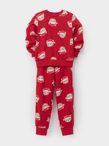 Новогодняя пижама из натурального хлопка.  Джемпер с длинными втачными рукавами и брюки с эластичной резинкой в поясе. Мягкие манжеты на рукавах и по низу брюк. Пижама отлично подойдёт для создания уютных домашних образов или в качестве подарка на Новый год и Рождество. Оригинальная набивка выполнена из стойких текстильных гипоаллергенных красителей. Изделие сохраняет цвет и форму после многократных стирок. Все трикотажные полотна производятся в соответствии с нормами швейцарского сертификата ЭкоТекс.