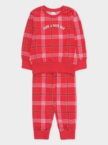 Трикотажная пижама из натурального хлопка. Джемпер с длинными втачными рукавами и брюки с эластичной резинкой в поясе. Мягкие манжеты на рукавах и по низу брюк. Пижама отлично подойдёт для создания уютных домашних образов или в качестве подарка на Новый год и Рождество. Оригинальная набивка и принт выполнены из стойких текстильных гипоаллергенных красителей. Изделие сохраняет цвет и форму после многократных стирок. Все трикотажные полотна производятся в соответствии с нормами швейцарского сертификата ЭкоТекс.