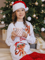 Трикотажный пижамный комплект из натурального хлопка. У футболки короткие рукава. Брюки с удобным поясом на резинке и утягивающим плетеным шнуром. Оригинальная набивка и принт выполнены из стойких, гипоаллергенных текстильных красителей. Все трикотажные полотна производятся в соответствии с нормами Швейцарского сертификата ЭкоТекс.