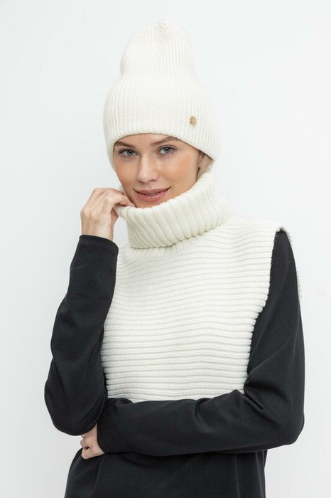 Уютная вязаная манишка с высоким воротником из шерсти и акрила. Шерсть в составе хорошо удерживает тепло, а волокна акрила делают изделие мягким и предотвращают деформацию и появление катышек. Лаконичный крой хорошо сочетается с верхней одеждой.