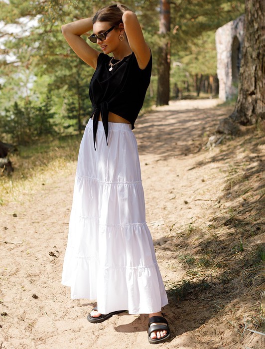 Состав: 100%ХлопокПышная юбка с воланами выполнена из плотного поплина. Воздушная модель без подкладки. Материал изделия прочный и износостойкий, но при этом мягкий и удобный, не просвечивает, отлично подходит для повседневной носки, гарантируя абсолютный комфорт даже в жаркое время года.