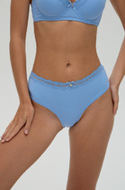 Трусики со средней посадкой формы Hipster выполнены из нежного полотна в рубчик.  Элегантное кружево по талии трусиков и  бантик украшают изделие. Подгиб и плоский шов по срезу ножек. Ластовица из хлопка.