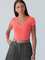 Vilatte Футболка из плотного трикотажа с плетением риб 1*1 D49.126 розовый корал