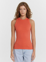 Топ женский полуприлегающего силуэта из трикотажной ткани. Горловина и проймы обработаны бейкой.