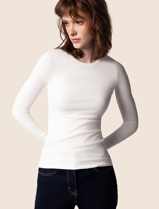 Акция Vilatte Джемпер из трикотажа в широкий рубчик D49.041 молочный