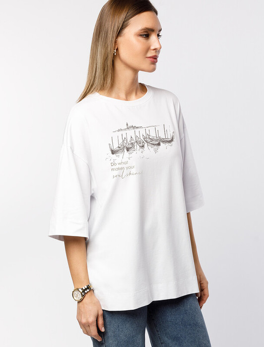 Совместные покупки Каменск-Уральский Женская одежда Футболки — Акция Vilatte Футболка свободного кроя с авторским принтом D49.082 белый_soul s
