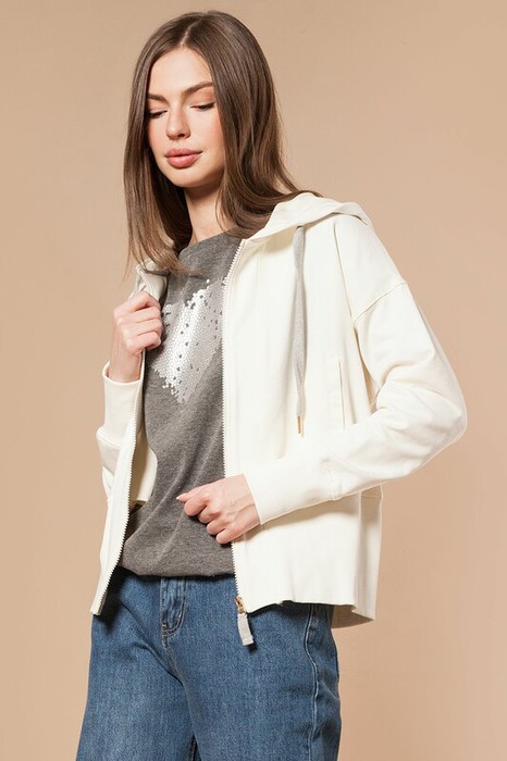 Акция Vilatte Худи на молнии с золотистой фурнитурой D49.712 молочный