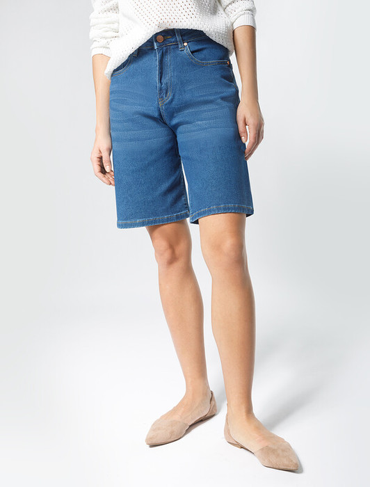 Шорты выполнены из эластичного денима. Комфортная длина подходит для любой фигуры. Мягкая прочная ткань хорошо пропускает воздух, а изделия из нее не растягиваются и надолго сохраняют заданную форму. Лучшая альтернатива джинсам в жаркое время года.