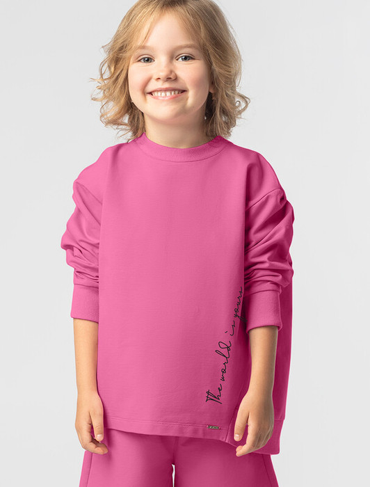 Совместные покупки Каменск-Уральский Детская одежда Джемперы, свитеры — Акция Vilatte Свитшот из премиального футера с принтом F49.406 фуксия