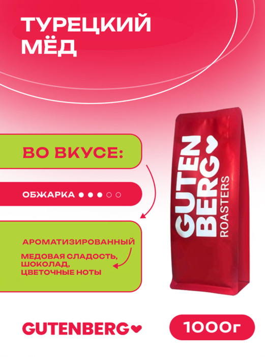 Нежное сочетание свежеобжаренного кофе и утончённой сладости турецкого мёда с цветочными и шоколадными нотками на послевкусии.