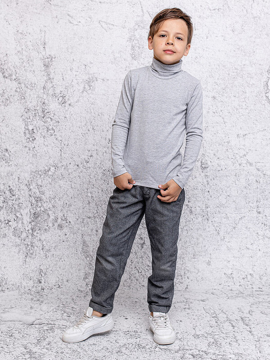 Водолазка (джемпер) для мальчика серая с длинным рукавом из ткани рибана. Классическая трикотажная хлопковая недорогая водолазка-джемпер в полоску с высоким воротником - прекрасный вариант для школы и повседневной носки. Водолазка для мальчиков выполнена из качественного хлопка.Характеристики:Ткань: Рибана 100% хлопокПроизводитель: batik